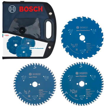 Descriere Set lame circulare 165 mm, cu geantă (albastru închis, 4 bucăți, alezaj 20 mm) de la Bosch