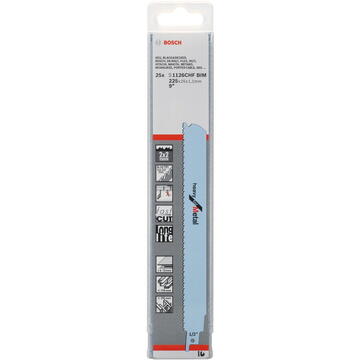 Bosch Lamă de ferăstrău sabie S1126 CHF BiM Metal 225x1.1mm 8-10TPI pachet de 25
