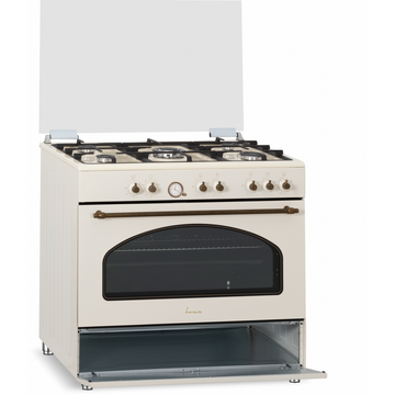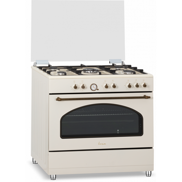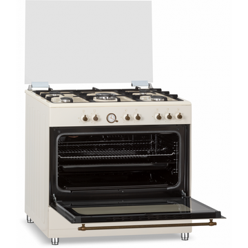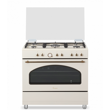 FRAM FFSC-S90MLITGCFRBG, 5 arzatoare, Arzător wok, Lumină cuptor, Crem