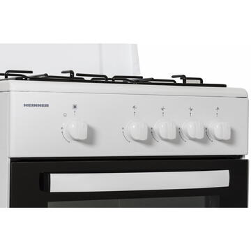 Heinner HFSC-SME50WH, 4 arzatoare gaz, Supapa de siguranta, Duza GPL, Alb