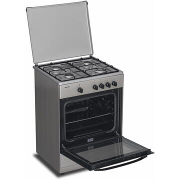 Descriere HFSC-SME60SL, 4 arzatoare, Dispozitiv siguranta plita si cuptor, Supapa de siguranta, Duza GPL, Argintiu de la Heinner