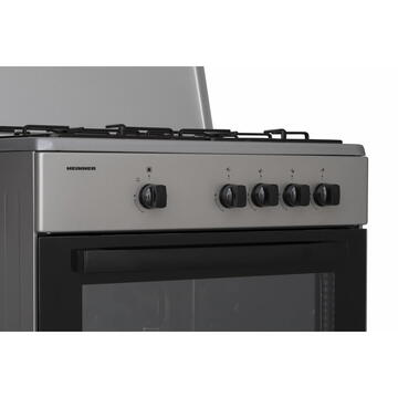 Heinner HFSC-SME60SL, 4 arzatoare, Dispozitiv siguranta plita si cuptor, Supapa de siguranta, Duza GPL, Argintiu
