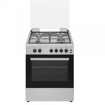 INOX 4 arzătoare + cuptor pe gaz 1 arzător WOK Grill Timer cuptor Siguranţă plită + cuptor Aprindere electrică plită și cuptor Iluminare cuptor Geam dublu la cuptor Tavă + grătar cuptor Capacitate cuptor 55 litri Capac de sticla Montat pe gaz natural Diuze butelie - separat Design modern, robust, elegant Dimensiuni brute: 660x670x892 mm (LxAxH) Dimensiuni nete : 600x630x855 mm (LxAxH) Greutate brută: 43 kg Greutate netă: 41 kg