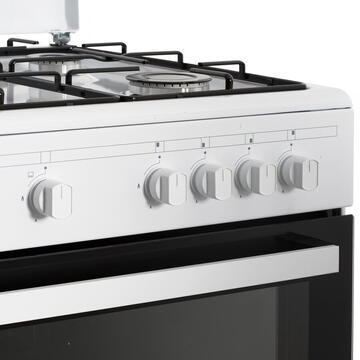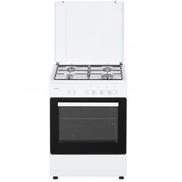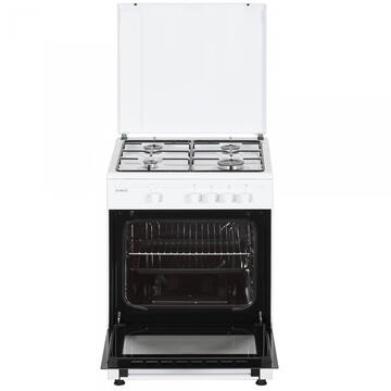 Culoare albă 4 arzătoare Cuptor pe gaz Siguranţă plită + cuptor Geam dublu la cuptor Tavă + grătar cuptor Capac din metal Montat pe gaz natural Diuze butelie - separa Design modern, robust, elegant Dimensiune brută: 650 x 670 x 892 mm Dimensiune netă: 600 x 630 x 855 mm Greutate burtă: 43 kg Greutate netă: 41 kg