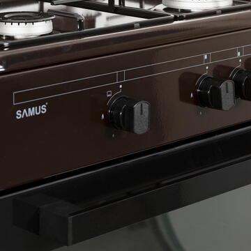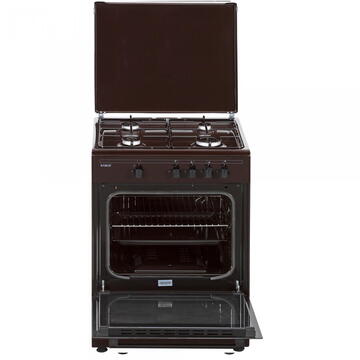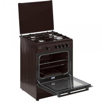Culoare maro 60 cm x 55 cm 4 arzătoare Cuptor pe gaz Capacitate cuptor: 63 litri Siguranta plita + cuptor Geam dublu la cuptor Tava + gratar cuptor Capac metalic Montat pentru utilizare cu butelie Diuze gaz natural - separat Design modern, robust, elegant Dimensiuni nete: 598 x 567 x 853 mm Dimensiuni brute: 646 x 630 x 893 mm Greutate neta: 32 kg Greutate bruta: 34,5 kg