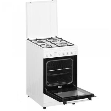 Culoare albă 50 cm x 60 cm 4 arzătoare Cuptor pe gaz Capacitate cuptor: 49 litri Siguranta plita + cuptor Aprindere electrica Lumina interioara Timer mecanic Geam dublu la cuptor Tava + gratar cuptor Capac metalic Montat pentru utilizare cu butelie Diuze gaz natural - separat Design modern, robust, elegant Dimensiuni nete: 498 x 610 x 860 mm Dimensiuni brute: 550 x 670 x 892 mm Greutate neta: 33,4 kg Greutate bruta: 35,1 kg