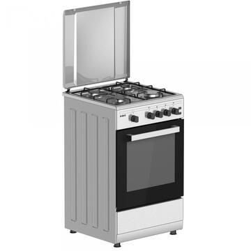 Alimentare plita Gaz Numar arzatoare 4 Arzator mare 1 Arzator mic 1 Arzator normal 2 Cuptor Grill Nu Rotisor Nu Alimentare cuptor Gaz Aprindere electrica cuptor Da Capacitate 49 l Timer Da Iluminare cuptor Da Accesorii Capac Metalic Gratar cuptor Da Specificatii tehnice Dimensiuni (Latime x Adancime x Inaltime) 55 x 60 x 89 cm Culoare Inox Greutate 32.5 Kg
