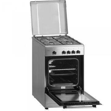Culoare inox (bord & plita) + laterale argintii 50 cm x 50 cm 4 arzătoare Cuptor pe gaz Capacitate cuptor: 49 litri Siguranta plita + cuptor Geam dublu la cuptor Maner usa cuptor din aluminiu Tava + gratar cuptor Capac metalic Montat pentru utilizare cu butelie Diuze gaz natural - separat Design modern, robust, elegant Dimensiuni nete: 498 x 555 x 860 mm Dimensiuni brute: 549 x 600 x 890 mm Greutate neta: 34,5 kg Greutate bruta: 37,5 kg