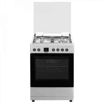 Samus SM663AENS1 INOX, 4 arzatoare, Aprindere electrica, Ventilator integrat, Timer, Argintiu/Inox