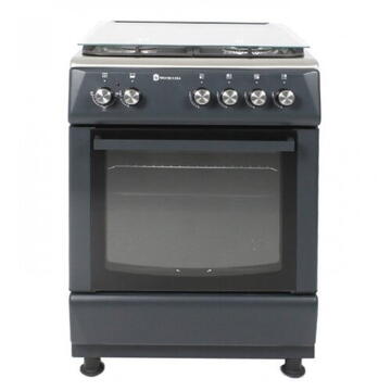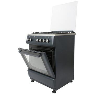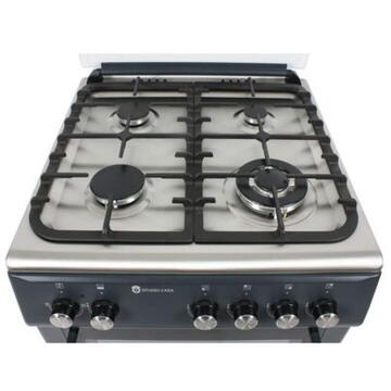 Aragaz Studio Casa Peony Petrol Grey 4G 60/60 cm, Cuptor gaz, 3 arzatoare gaz +1 Wok, Grill electric, gratare email mat, Aprindere electrica, Valve de siguranta, Gri / Inox