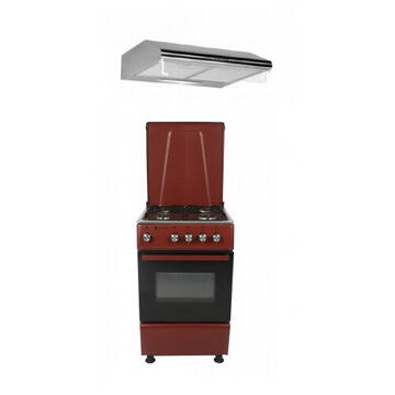 Descriere Pachet aragaz clasic si hota inox Red Style Studio Casa, 4 arzatoare gaz, Cuptor gaz, Rosu/inox de la Studio Casa