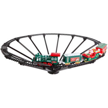 Acest trenuleț nu numai că decorează, ci și îmbunătățește atmosfera de sărbătoare cu funcțiile sale unice. Locomotiva luminează, redă muzică și oferă o experiență magică pentru întreaga familie, deoarece dispare printre ramurile brădulețului trăgând vagoanele și sania lui Moș Crăciun. Asamblarea nu necesita experiență, se poate monta in cateva minute. Produsul este fabricat din materiale de înaltă calitate, astfel încât are o durată de viață lungă. Trenulețul este alimentat de 2 baterii AA, care trebuie introduse în locomotivă și apoi pornite și oprite cu comutatorul în lateral. Puteți alege ordinea vagoanelor după cum doriți.
