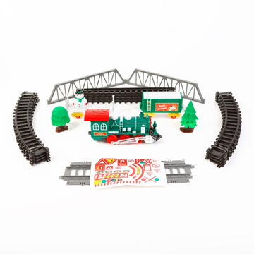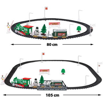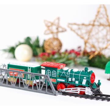 Acest trenuleț nu este doar decorativ, ci și îmbunătățește atmosfera de sărbătoare cu caracteristicile sale unice. Locomotiva se aprinde și redă muzică, creând o experiență magică pentru întreaga familie, pe măsură ce dispare în spatele bradului de Crăciun, trăgând trăsurile și sania lui Moș Crăciun plină de cadouri. Ansamblul nu necesita expertiza, se poate asambla in cateva minute. Produsul este realizat din materiale de înaltă calitate și are o durată de viață lungă. Trenul este alimentat de 2 baterii AA, pe care le puneți în locomotivă și le porniți și opriți cu comutatorul în lateral. Puteți alege ordinea vagoanelor.