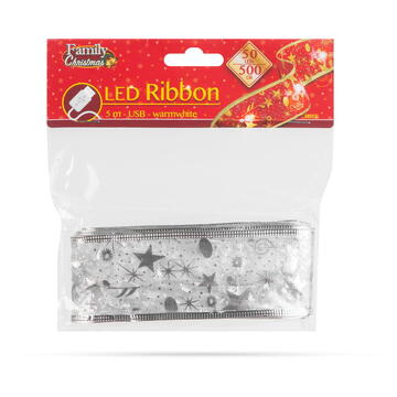 Descriere Panglică LED de Crăciun - argintie - 5 m x 5 cm - 2 x AA de la Familly Christmas