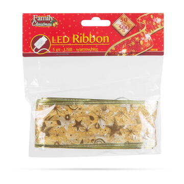 Descriere Panglică LED de Crăciun - aurie - 5 m x 5 cm - 2 x AA de la Familly Christmas