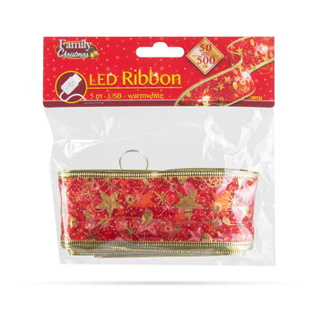 Descriere Panglică LED de Crăciun - roșie - 5 m x 5 cm - 2 x AA de la Familly Christmas