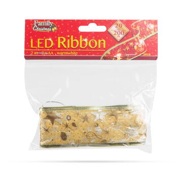 Descriere Panglică LED de Crăciun - aurie - 2 m x 5 cm - 2 x AA de la Familly Christmas