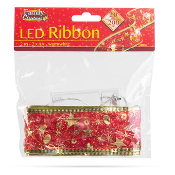 Descriere Panglică LED de Crăciun - roșie - 2 m x 5 cm - 2 x AA de la Familly Christmas