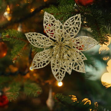 Descriere Ornament de Crăciun - cu cleme - floare cu sclipici - auriu - 3 buc/pachet de la Familly Christmas
