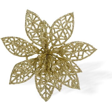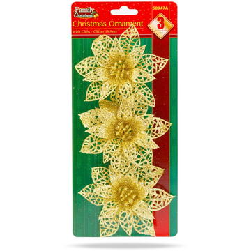 Familly Christmas Ornament de Crăciun - cu cleme - floare cu sclipici - auriu - 3 buc/pachet