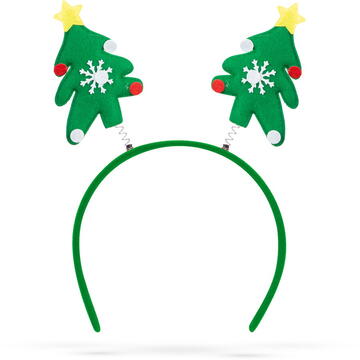 Această bentiță confortabilă decorată cu figuri de Crăciun poate fi un plus distractiv pentru orice îmbrăcăminte. Va înveseli cu siguranță ținuta de Crăciun a oricărui adult sau copil. Figurine montate pe arcuri O mărime universală Design: brad de Crăciun Dimensiune: 19 x 23 cm Greutate: 17 g