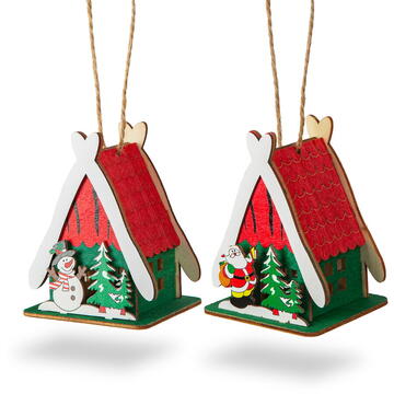 Descriere Casuță de Crăciun din lemn cu led - 2 tipuri - 6,9x8,9x6 cm - 12buc/ de la Generic