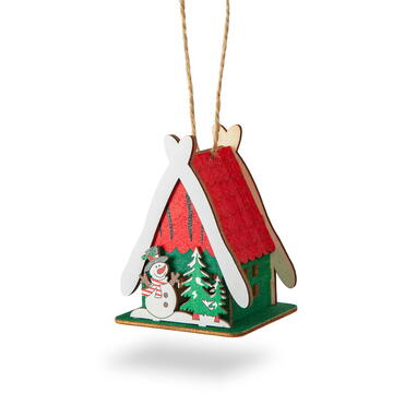 Casuță de Crăciun din lemn cu led - 2 tipuri - 6,9x8,9x6 cm - 12buc/