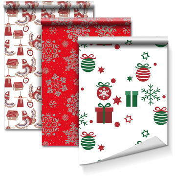 Aceasta hartie de împachetat este alegerea perfectă pentru ambalarea creativă și elegantă a cadourilor. Acest pachet mixt conține trei tipuri de hârtie de împachetat cu modele și culori frumoase, cu care poți crea ambalaje pentru un cadou unic. Hârtia de împachetat este de înaltă calitate, durabilă și ușor de manevrat. Modelele și culorile unice speciale permit cadourilor tale să iasă în evidență. Modelele din pachet sunt variate, așa că îl puteți găsi pe cel mai potrivit pentru fiecare ocazie. Acest set de hârtie de împachetat este ideal pentru cadouri de Crăciun, zile de naștere sau orice altă ocazie festivă. Hârtiile de împachetat pot fi tăiate, pliate și fixate cu ușurință.   Ușor de tăiat 3 tipuri de modele într-un singur pachet Fabricat din hârtie ușor de utilizat   Dimensiune: 70 x 150 cm Material: Hârtie de 70 gsm Conținutul pachetului: 3 role/pachet