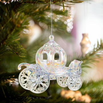Ornament de Crăciun - cărucior iridescent, acrilic - 11 x 5,5 x 9,5 cm