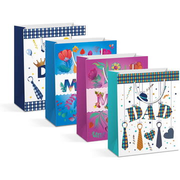 Pungă cadou - hârtie - 265 x 127 x 330 mm - 4 tipuri/ pachet