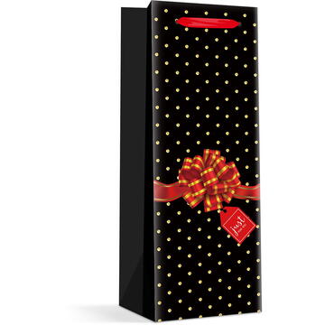 Dacă doriți să vă prezentați cadoul cu stil, atunci acest suport pentru sticle este alegerea perfectă. Este fabricat din hârtie de înaltă calitate, rezistentă și, datorită dimensiunii sale, este ideal pentru a face cadou majoritatea sticlelor de băuturi. Punga cadou ușor de utilizat este practică și facilitează procesul de împachetare a cadourilor.   Mai multe modele Strălucitor, cu sclipici Dimensiunea perfectă pentru majoritatea sticlelor de băuturi Partea inferioară durabilă Mâner rezistent   Dimensiune: 36 x 12,7 x 8,3 cm Lungimea mânerului: 40 cm