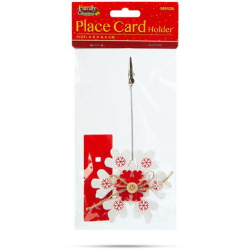Acest suport de card de Crăciun este alegerea perfectă pentru orice eveniment festiv, prânz sau cină. Marcați locul oaspeților tăi la masă sau pur și simplu urează-le un Crăciun Fericit! Felicitarea este realizată din lemn, un material atemporal și prietenos cu mediul, contribuind în același timp la decorul tău festiv. Clemele din partea de sus facilitează atașarea cartelei de locație. Cu aspectul său unic și fermecător, succesul este garantat!   Culori vesele Din lemn Usor de asamblat Baza stabila Clipuri puternice