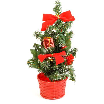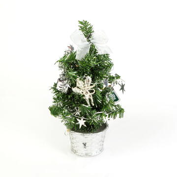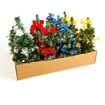 Decorează-ți casa și biroul de sărbătoarea iubirii. Daca sufrageria ta nu este suficient de mare pentru un brad adevarat, bradul artificial poate fi o alternativa perfecta. Cu forma sa subțire și modelată, nu ocupă mult spațiu în cameră, dar emană o atmosferă confortabilă, de Crăciun. Odată cu trecerea sărbătorii, nu trebuie să cureți acele căzute, bradul tău va arăta la fel de frumos ca atunci când l-ai așezat. După instalare, ramurile pot fi aranjate după dorință, creând un efect natural. 4 culori Cu ornamente aurii, argintii, roșii, albastre Ușor de configurat Are efect natural Pentru uz interior   Dimensiune: 30 cm Material: Plastic PVC, poliester