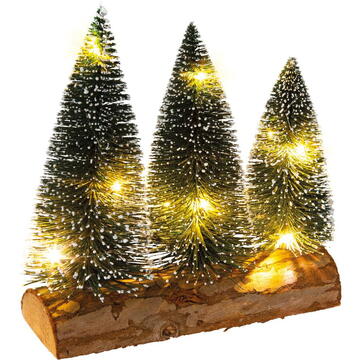 Christmas set of trees on wood base with LEDLED color: warm whiteProduct size: 20 x 3,8 x 22,5 cmNumber of LED: 10Battery type: 2 x CR2032 (excluded)Protection class: IP20