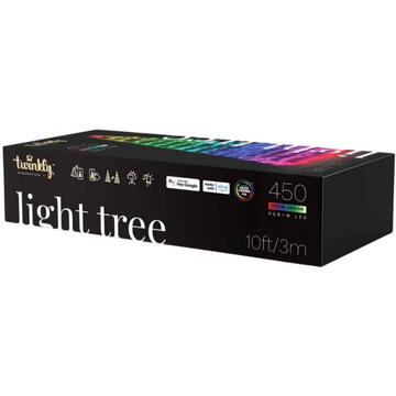 Acest pom de Craciun luminos inteligent cu o inaltime de 3 metri este usor de utilizat si ofera cea mai avansata tehnologie pentru decorarea locuintei. · O decoratiune de Craciun simpla, dar eficienta pentru gradina. · Poate fi utilizat in interior sau in exterior datorita gradului de protectie IP44. · Sursele de lumina pot fi controlate pur si simplu cu ajutorul aplicatiei Twinkly (disponibila atat pe iOS, cat si pe Android). · Fiecare LED isi schimba culorile si reprezinta un singur pixel care poate fi controlat individual cu ajutorul aplicatiei. · Se poate alege dintr-o gama larga de efecte predefinite din galerie sau se pot descarca altele noi. · Pentru un plus de confort, se pot seta temporizatoare si programe, astfel incat produsul sa se porneasca intotdeauna la momentul potrivit. · Cu ajutorul functiei de control vocal prin Amazon Alexa, Apple HomeKit sau Google Assistant, produsul poate fi pornit sau oprit sau poate fi reglata luminozitatea acestuia doar cu o comanda vocala. · De asemenea, este posibila alegerea oricarei combinatii de culoare, grad de luminozitate, model, rotatii si frecvente de schimbare. · Combinati practic mai multe surse de lumina Twinkly intr-o singura instalatie frumoasa. · Un buton de pe unitatea de control permite pornirea si oprirea si selectarea unor scene predefinite. · Microfonul integrat permite ledurilor sa reactioneze la muzica sau la alte sunete. · Culoarea neagra a cablului se potriveste cu orice fundal si nu interfereaza cu aspectul final. · Pomul este prevazut cu un total de 450 de leduri.