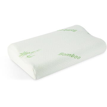 Dacă şi tu suferi de dureri de spate și gât dimineața, la trezire - probabil că nu foloseşti perna cea mai adecvată! Datorită materialului de umplutură din spumă cu memorie, această perne își recapătă întotdeauna forma originală, adaptându-se mereu la poziția ta de dormit. Datorită designului pernei, aceasta oferă un sprijin uniform, ameliorând sarcina asupra mușchilor gâtului și a coloanei vertebrale, astfel încât să te poţi trezi relaxat după orele de somn. Datorită poziției de somn confortabile și sănătoase, reduce probabilitatea de a dezvolta sforăitul nocturn. Fibrele de bambus îi conferă o palpare mătăsoasă și o senzație de răcoare.