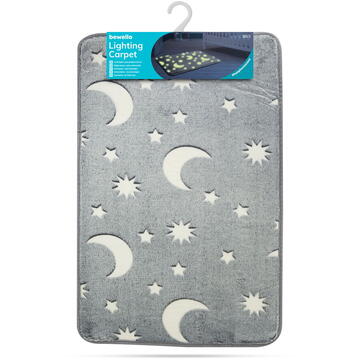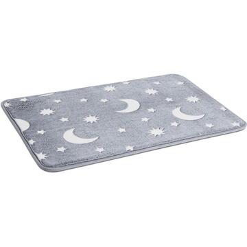 Covor din bumbac. Copiilor le place să se joace pe podea, ceea ce îl face ideal pentru orice cameră de copii, dar poate fi folosit și ca decor pentru baie. Covorul conține pigmenți fosforescenți, așa că se reîncarcă sub influența luminii naturale și artificiale, și strălucește cu lumină verzuie pe întuneric. Culoarea gri, elegantă, și cerul înstelat creează o atmosferă plăcută în orice cameră. Datorită spatelui din cauciuc antiderapant, nu se mișcă și poate fi folosit în siguranță. Fosforescent Poate fi încărcat de lumină naturală sau artificială Material flanel - extra moale Nu absoarbe umezeala Spate din cauciuc antiderapant Poate fi folosit chiar și ca lumină de veghe Material: Flanel + poliester Culoare: Gri Dimensiune: 60 x 40 cm Spălare: Doar manuală Înălbire: Nu Curățare chimică: Da Călcare: Da Uscare mecanică: Da Greutate: 550 g / m² Greutate totală: ~150 g