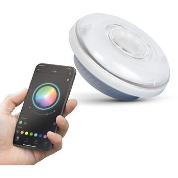 O experiență de wellness specială în casa ta! Vei avea o atmosferă unică în jacuzzi sau piscină cu această lumină LED RGB inteligentă. O experiență de cinci stele în fiecare zi. Datorită funcționării economice, te poți bucura de experiența vizuală a produsului pentru o lungă perioadă de timp. Controlul este posibil prin smartphone, conexiune bluetooth sau telecomandă, astfel încât piscina ta să fie frumoasă în culori unice! Folosește stările predefinite din aplicație sau luminează-ți piscina în culori personalizate! Utilizări: Modul de imersie: Acest mod este cel mai bun dacă dorești efectul de apă colorată în piscina sau jacuzzi. Cu ventuzele incluse sau magnetul încorporat poți fixa lumina pe fundul piscinei. Modul de plutire: Produsul este capabil să plutească la suprafața apei datorită aerului și buretelui din interior. Montat pe peretele lateral: Îl poți atașa pe marginea piscinei, jacuzzi cu ventuzele incluse. Control cu smartphone, telecomandă Conectivitate: prin Bluetooth Sistem de operare acceptat: Android, iOS Aplicație: descărcare gratuită din magazine (aplicația „HiLightning”) Număr de LED-uri: 15 Raza de acțiune a telecomenzii: ~ 20 m Indice de protecție: IP68 Luminozitate: 48 lumeni Culori: se amestecă liber Sursa de alimentare: 3 x baterii AA (nu sunt incluse) + 1 x CR2025 (furnizat) Dimensiune: diametru: 9,5 cm, înălțime: 3,6 cm Fixare: cu ventuză, magnet Greutate: ~ 112 g (fără baterii)