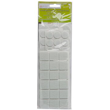 Ideal pt. articole tehnice, mobila etc. Se poate lipi sub orice obiect pt. protejarea mesei parchetului, linoleului etc. impotriva zgirieturilor si a alunecarii nedorite. Dimensiuni: - patrat: 36x25mm - rotund: 24x28mm - rotund: 60x20mm Culoare: Alb