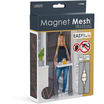 Feriti-va locuinta de insectele zburatoare. Ideal pt. uzul casnic, pt. magazine, case de vacanta, etc. Amplasare si indepartare simpla si rapida prin fixarea cu scai Inchidere magnetica Usor de curatit Lavabil la 30 °C Rezistent UV Dimensiuni: 10 x 210 cm Culoare: Inscriptie „Love”