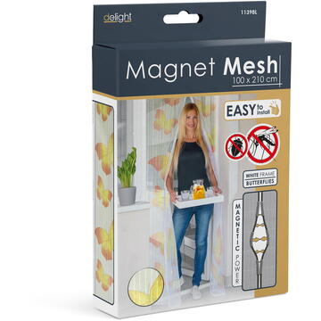 Feriti-va locuinta de insectele zburatoare. Ideal pt. uzul casnic, pt. magazine, case de vacanta, etc. Amplasare si indepartare simpla si rapida prin fixarea cu scai Inchidere magnetica Usor de curatit Lavabil la 30 °C Rezistent UV Dimensiuni: 100 x 210 cm Model: fluturi