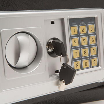 Ofera siguranta deplina pt. depozitarea bijuteriilor, banilor, sau actelor importante. Obiectele pretioase sunt pazite de un sistem digital deosebit de sigur - al carui cod PIN este stiut doar de catre Dvs. Codul PIN se compune din 3 pana la 8 cifre, alese de Dvs. In caz de nevoie, codul PIN poate fi modificat oricand - tot de catre Dvs. In cazul uitarii codului PIN, acesta poate fi deschis doar cu ajutorul cheii mecanice Master, accesoriu al seifului. Cheia master este recomandabil de a fi pastrat in alta locatie, de cat cea a seifului.