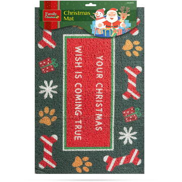 Înainte de Crăciun alocă-ți timp pentru a decora ușa din față, deoarece acesta este primul detaliu pe care îl vor observa oaspeții. Întâmpină-i cu un decor minunat, festiv. Aceștia vor intra în apartament deja scufundați în atmosfera sărbătorii. Nu uita nici de preș! Moale la atingere Impermeabil, cu spate din cauciuc Dimensiune: 60 x 40 cm Material: PVC Mesaj: ”Dorința ta de Crăciun se împlinește” Greutate: ~ 650 g