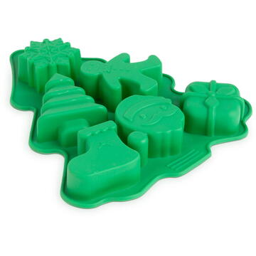 Pe lângă decorarea camerelor, nu uita să acordazi atenție și preparării prăjiturilor festive într-un mod elegant. Matrițele de copt din silicon pot fi utilizate într-o varietate de moduri. Pe lângă deserturi, poate fi folosit și la prepararea plăcintelor, a cărnii tocate și la coacerea cărnii sau a prăjiturilor sărate. Mai mult, producătorii de săpun și producătorii de lumânări preferă o formele din silicon. Secretul popularității matrițelor de copt din silicon este că au o rezistență ridicată la căldură și sunt flexibile. Sfaturi de utilizare: Așezați matrița goală din silicon pe tava de copt înainte de a pune aluatul, deoarece materialul este moale și umplutura poate cădea ușor din ea. Ungeți cu puțină grăsime. Dacă pregătiți mâncăruri reci, clătiți-o cu apă rece în prealabil. Nu puneți matrița de copt în contact cu flăcările deschise. Nu tăiați niciodată în matrița din silicon cu un cuțit sau un instrument ascuțit, deoarece o veți deteriora. Cel mai bun mod de a scoate desertul dintr-o formă de copt din silicon este ca mai înainte să așteptați să se răcească complet. Înainte de prima utilizare: Înainte de prima utilizare, spălați bine tava de copt din silicon cu apă caldă și detergent, ștergeți-o și ungeți-o cu grăsime. Data viitoare, acest lucru va fi necesar numai dacă matrița este foarte uscată. Curățarea formelor de copt din silicon: Matrițele din silicon sunt ușor de curățat. Merită să le spălați manual, deoarece astfel rămâne în ele o cantitate minimă de grăsime, care nu se usucă. Nu folosiți bureți abrazivi sau detergenți abrazivi pentru curățare. Decolorarea matriței datorită coacerii nu afectează utilizarea. Atât temperaturile ridicate, cât și cele scăzute (-40 ° C și 230 ° C) sunt bine tolerate. Pot fi folosite atât pentru copt, cât și pentru congelare. Material: silicon Forme: cizmele lui Moș Crăciun, pom de Crăciun, Moș Crăciun, cadou, figurină de turtă dulce, fulg de zăpadă Dimensiune: 22 x 18,5 x 2,5 cm Porții: 6 porții Culoare: Verde Se poate pune în mașina de spălat vase Rezistentă la căldură și îngheț Interval de temperatură: -40 + 230 ° C