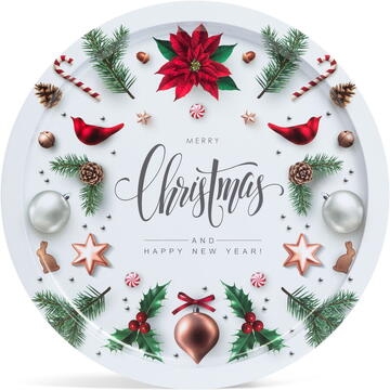 Descriere Tavă albă cu motive de Crăciun - metal - 31 cm de la Family Pound