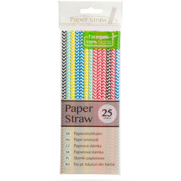 Paie din hartie pentru consumarea oricaror bauturi. De unica folosinta, nu este lavabil. Model dungi Confectionat din hartie Lungime:               195 mm Diametru:              6 mm Culoare:                Model dungi Continutul pachetului:          25 buc.