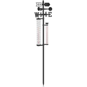 Urmăriți cu ușurință schimbările vremii. Cu acest instrument, puteți înregistra exact câtă ploaie a căzut, de unde bate vântul și puteți citi și temperatura actuală. Datorită țărușului de fixare, aceasta poate fi instalată și mutată rapid și fără efort. Datele fiecărui dispozitiv pot fi citite și din partea de sus a dispozitivului. Asamblare rapidă Termometru mare: Celsius și Fahrenheit Măsurarea precipitațiilor în mm Giruetă pentru măsurarea direcției și a forței vântului Indicator de latitudine încorporat Dimensiune: 145 x 23 x 23 cm Material: Metal / Plastic Scala termometrului: -40 - (+50) ° C Scara de masurare a precipitatiilor: 0 - 100 mm Culoare: negru