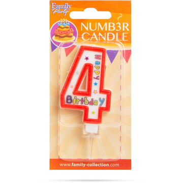 Lumânare pentru tort în forma cifrei 4. Dimensiune: 6,5 x 4 cm