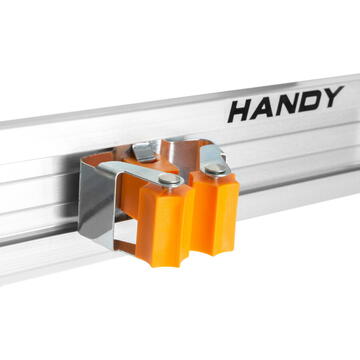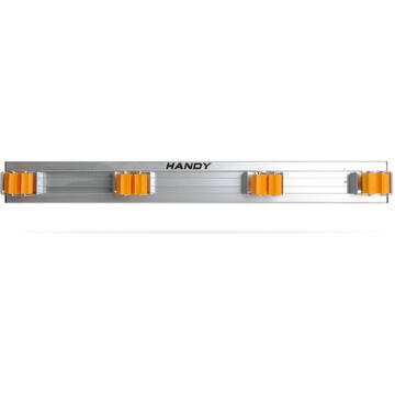 Soluția ideală pentru a economisi spațiu prețios în cămară. Pentru păstrarea obiectelor de uz casnic și a sculelor. Măturile, mopurile, și orice alte obiecte de uz casnic vor sta de acum într-un loc unde să nu încurce. Acest suport este o soluție elegantă pentru cămara ta.  Pe suport pot fi păstrate ustensilele de curățenie dar și alte scule necesare în casă. Suportul poate fi folosit atât la interior cât și la exterior. Beneficiază de locașuri pentru orice fel de ustensile cu diametrul mânerului între 1,5 cm și 3 cm.  Fixarea pe perete se face cu două șuruburi cu dibluri. Suporturile de scule pot fi glisate la stânga și la dreapta, datorită sistemului cu șină. Produsul este cauciucat la exterior pentru durabilitate și versatilitate. Calitate la un preț excepțional! Foarte ușor de instalat! Se fixează pe perete cu două șuruburi cu dibluri. Instalarea se face foarte ușor. Dimensiune 480 x 50 x 45 mm Dimensiunea de cuprindere 15 - 30 mm Culoare Gri Accesorii incluse Dibluri și șuruburi pentru prindere Material Aluminiu, cauciuc Masa 230 g