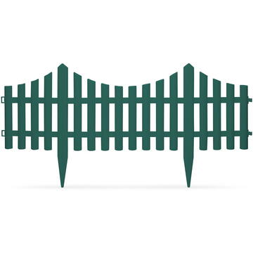 Gardulet din material plastic, cu infigere in sol, ideal pt. delimitarea straturilor de flori, a trotuarelor de gradina, sau al gazonului. Gard din material plastic solid, culoare verde Aspect pretentios, estetic Usor de asamblat Flexibil, instalabil chiar si in forma de cerc Dimensiuni: 60 x 23 cm - Se vinde la bucata